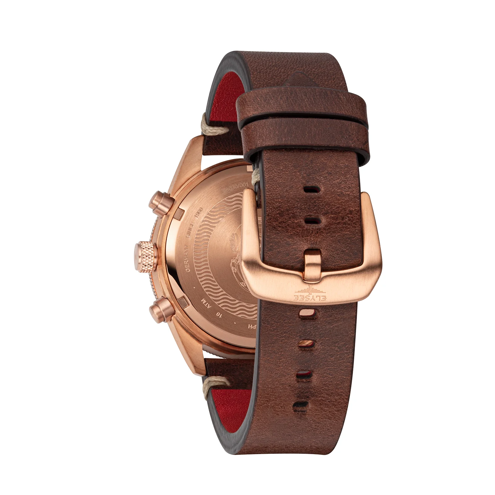 Entdecken Sie die BRONZE CHRONO, die sich aufgrund ihrer trendigen Erscheinung am Puls der Zeit bewegt. So erhält jede einzelne Bronze-Uhr im Laufe der Zeit eine individuelle Patina – eine sich durch äußere Einflüsse verändernde Oberfläche, die jede Uhr zu einem echten Unikat werden lässt. Diese Patina lässt sich aber problemlos auspolieren. Diese Elysee verfügt über ein hochwertiges Saphirglas sowie über eine 1-seitig drehbare Lünette mit 60-Minuten-Einteilung und Dreieckspunkt. Und auch das Zifferblatt wird um leuchtende Zeiger und Indizes aus Superluminova® ergänzt, die den Look der Uhr unterstreichen. Braunes Leder im Vintage-Stil runden das Design der BRONZE CHRONO ab und lassen insgesamt einen besonderen und einzigartigen Zeitmesser entstehen.